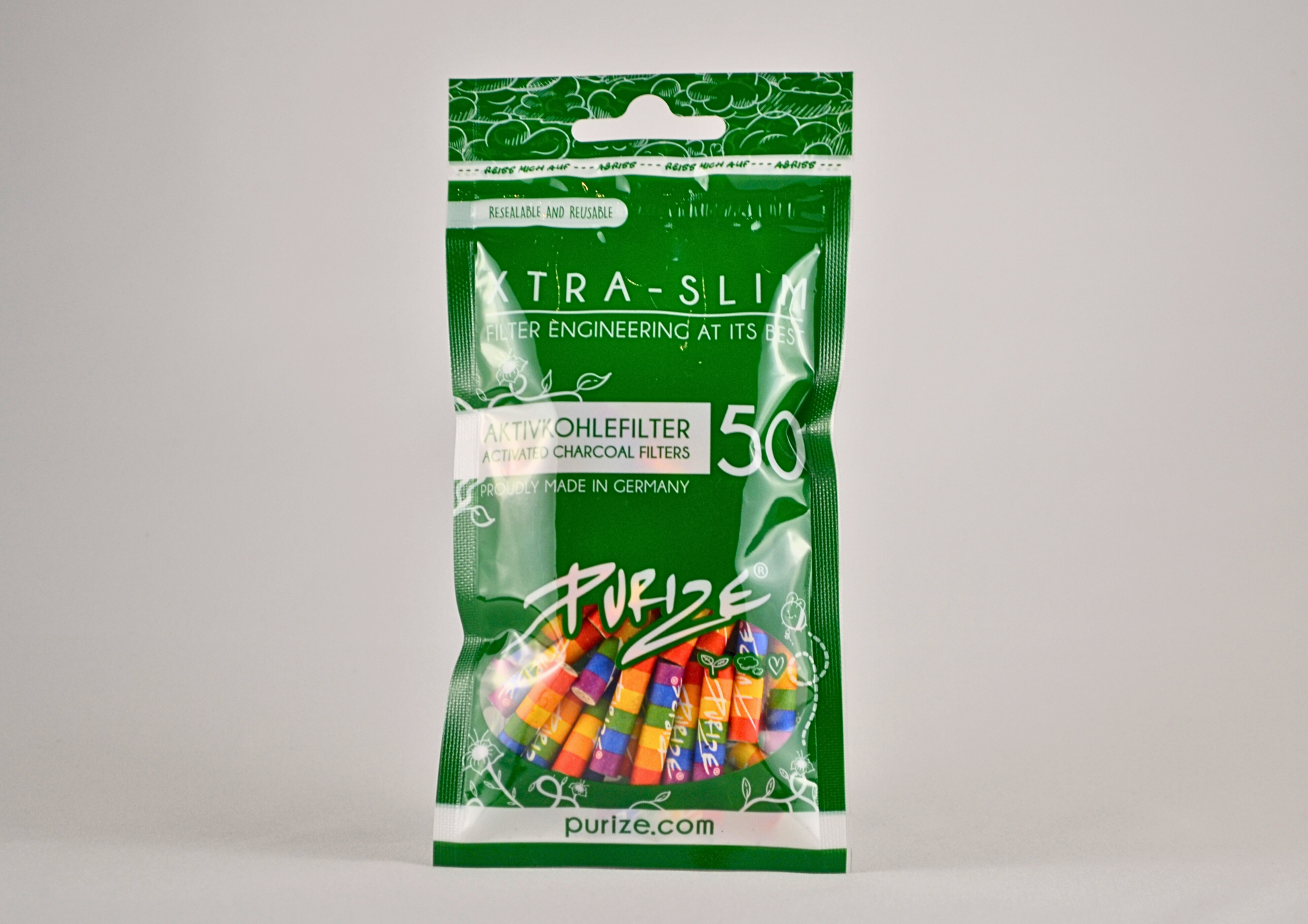 Die PURIZE Rainbow Activated Carbon Filters bringen Farbe in dein Set-up: Hochwertige Aktivkohlefilter im XTRA Slim Size Format (ø 5,9 × 26,9 mm), erhältlich im praktischen, wiederverschließbaren 50er oder 250er Beutel aus organischen Materialien. Ausgestattet mit Keramikkappen und Kokosnussschalen-Aktivkohle – für stylischen, sauberen Rauchgenuss. Exklusiv bei SKUNABY.